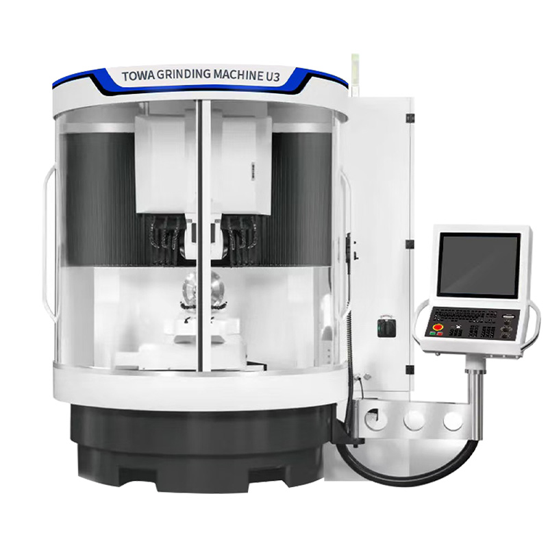 CNC  U3 是托瓦公司研发生产的高性价比五轴数控磨刀机,床身结构采用龙门式结构, 整体矿物铸造大理石床身及立柱,该结构具有出色的减震特性和刚性,从而保证机床高精  度的磨削。机床采用整体封闭式钣金,有机玻璃圆弧开门,保证完整的磨削空间,内部工  作空间采用日光灯进行照明。
